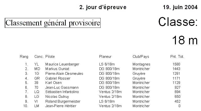 Résultats classe 18 mètres